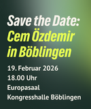 Save the Date: Cem Özdemir am 19. Februar in der Kongresshalle Böblingen (Europasaal), Einlass ab 18:00 Uhr. Details folgen.
